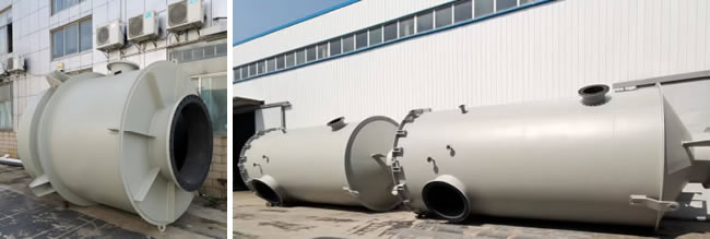 該項(xiàng)目為燃料電池回收工藝中的含酸尾氣進(jìn)行處理,配套碳鋼襯膠填料脫酸塔,碳鋼襯膠氣液分離塔,鈉堿法循環(huán)脫硫系統(tǒng)